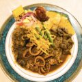 ぐつぐつと煮え立つ鮮やかなカレーのおかず。ココナッツの甘い香りが辺りに広がります。